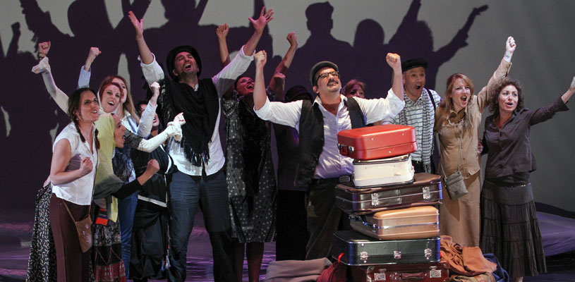 La obra cuenta la historia de unos personajes que tienen que emigrar. Unos huyen de sus países en guerra. Padres, madres e hijos buscan un futuro mejor. Mujeres que huyen de los malos tratos. Personas que buscan el amor. Hombres y mujeres que huyen de las crisis. Jóvenes con estudios y sin trabajo. Y también, por qué no, para reencontrarse simplemente con sus familias a las que dejaron hace años. En definitiva se embarcan para cumplir sus sueños